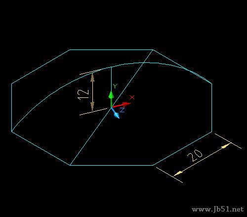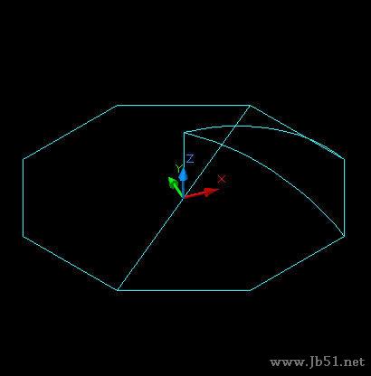 步骤九、之后,我们将做的曲面隐藏起来,接着建立伞的柄和把,切换一下视图,然后我们画一个六边形,进行拉伸30。如图所示:
