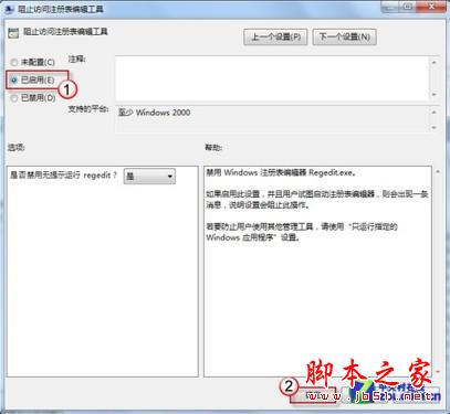 OK了!重启计算机测试一下,打开注册表后Win7就会弹出禁用提示了。这下,对程序设置的更改就不容易生效了!