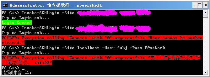 以上就是阔达飞机最近收集整理的关于PowerShell小技巧之尝试ssh登录的全部内容,更多相关PowerShell小技巧之尝试ssh登录内容请搜索靠谱客的其他文章。