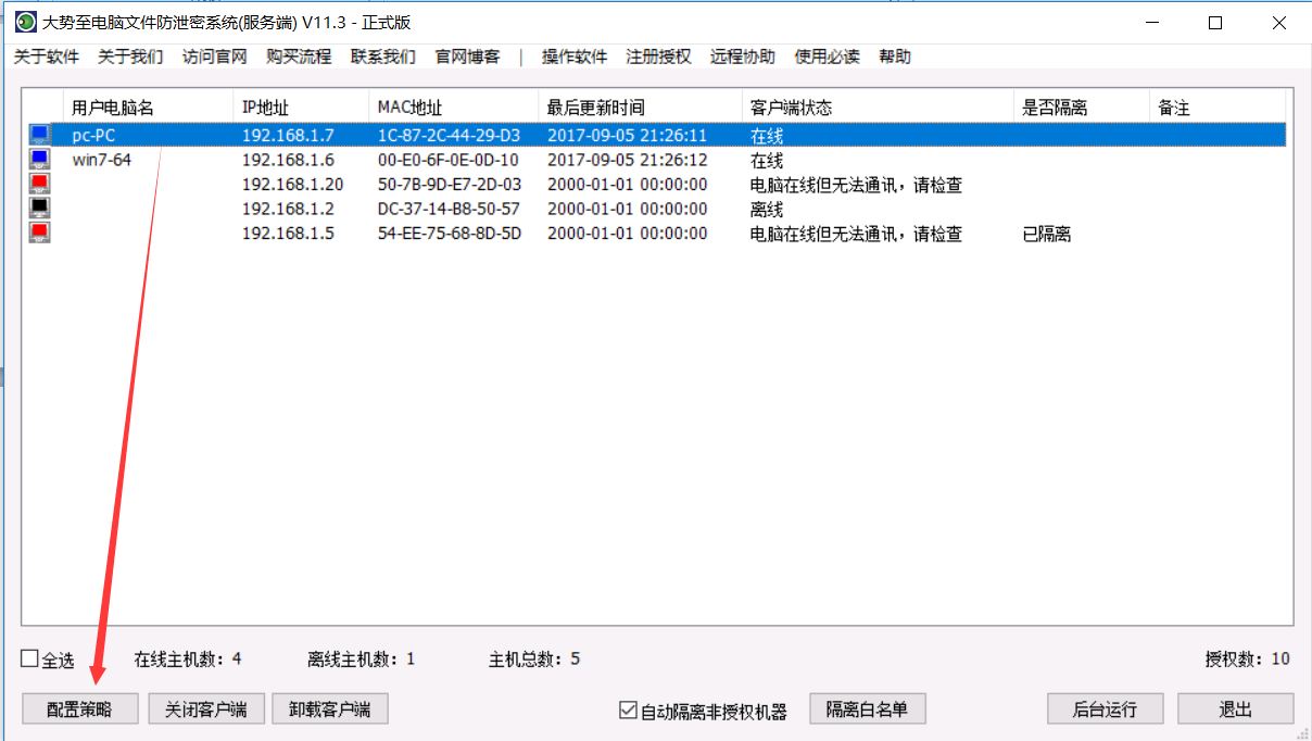 此功能启用的方法:鼠标单击选择单个或批量主机,然后点击下面的“配置策略”。如下图所示:
