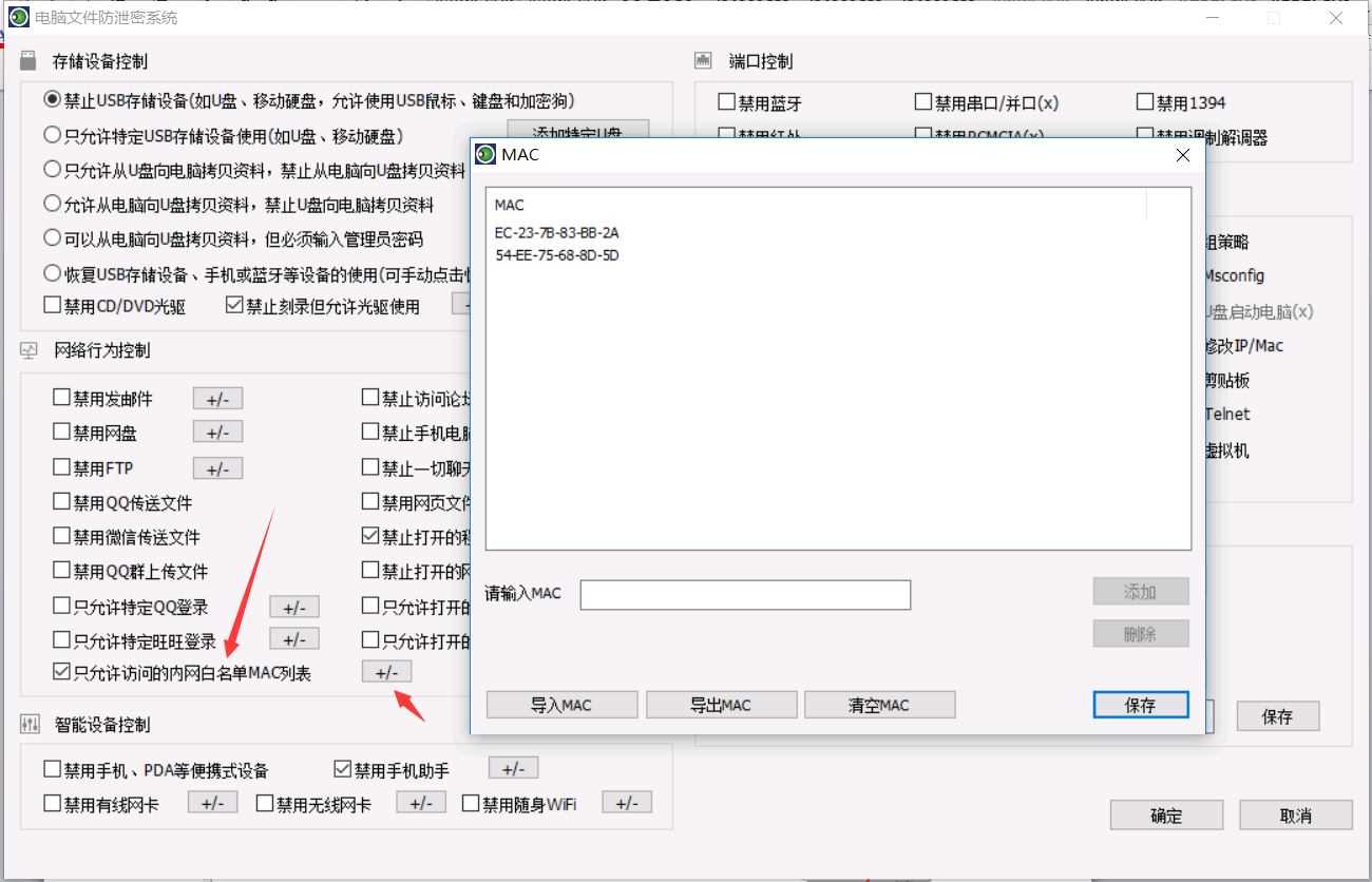 5、管理员可以自主添加/删除内网白名单MAC地址的功能;