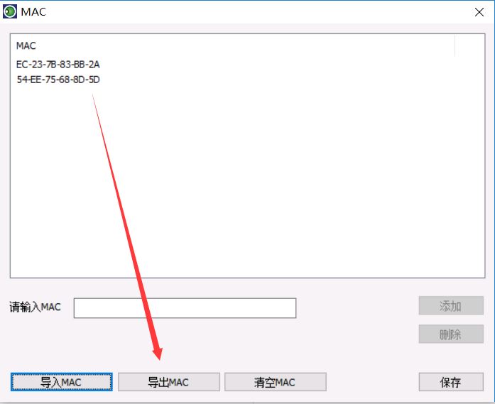 同时,为了确保客户端电脑可以与管理端通讯,并可以访问互联网,所以在批量导入MAC地址之前,建议先将网关的MAC地址和管理端的MAC地址导出,然后将其复制到要批量导入的MAC地址表中,然后再全部导入即可。如下图所示: