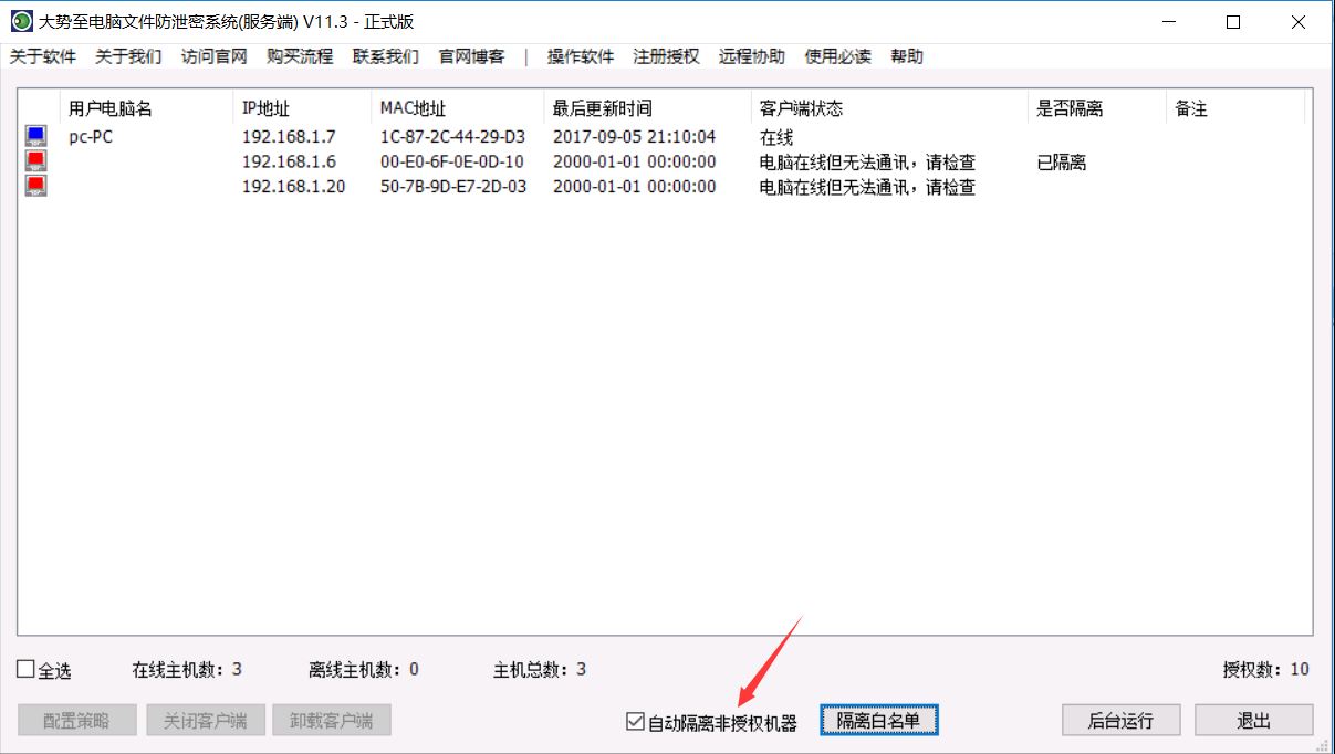 此功能是针对外部电脑接入单位局域网后,如果没有安装本系统的客户端,将自动予以隔离,禁止其访问互联网,同时也无法访问内网电脑;