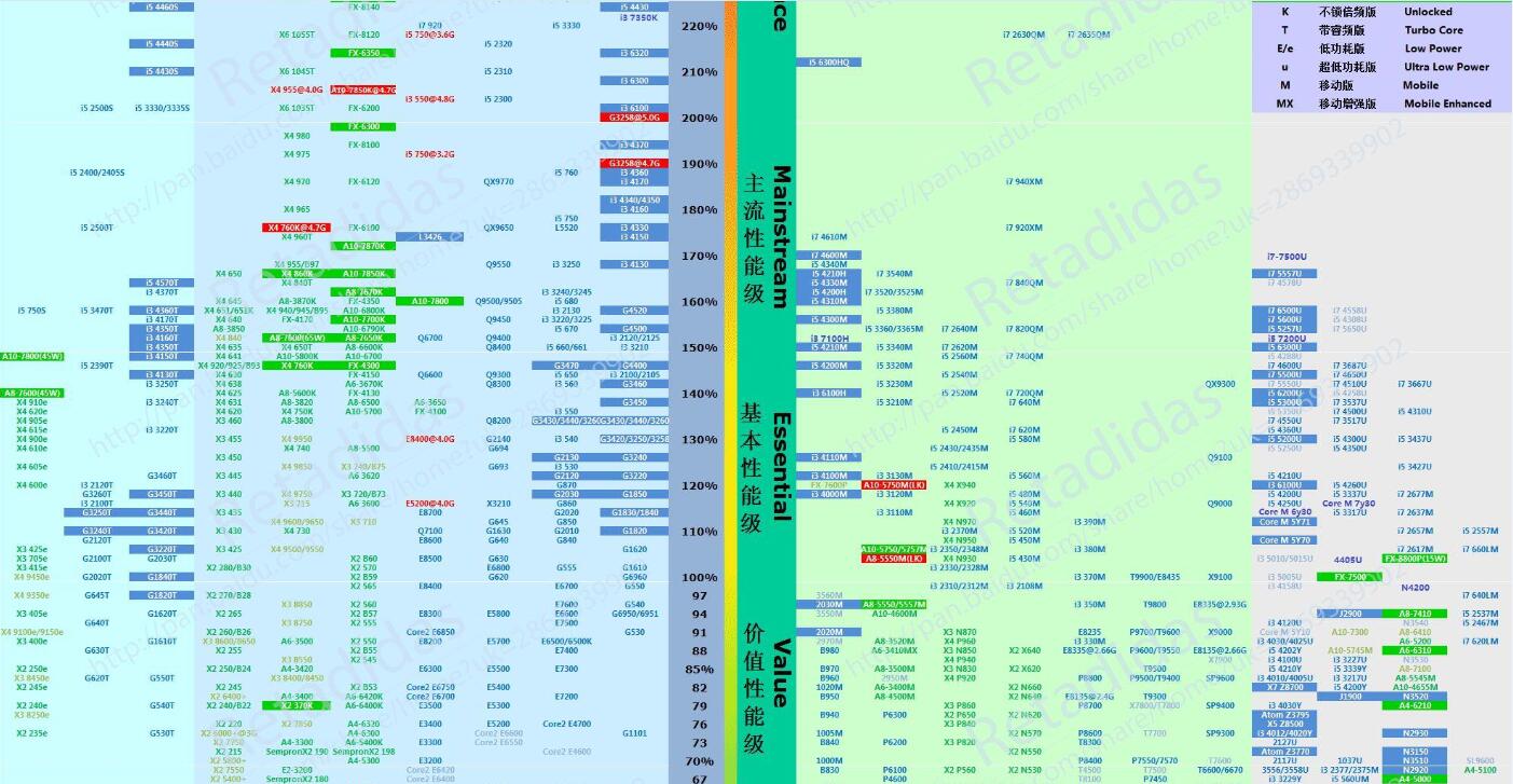 以上就是最新版CPU天梯图,小编会为大家随时更新新版的CPU天梯图,目前更新到2017年1月。
