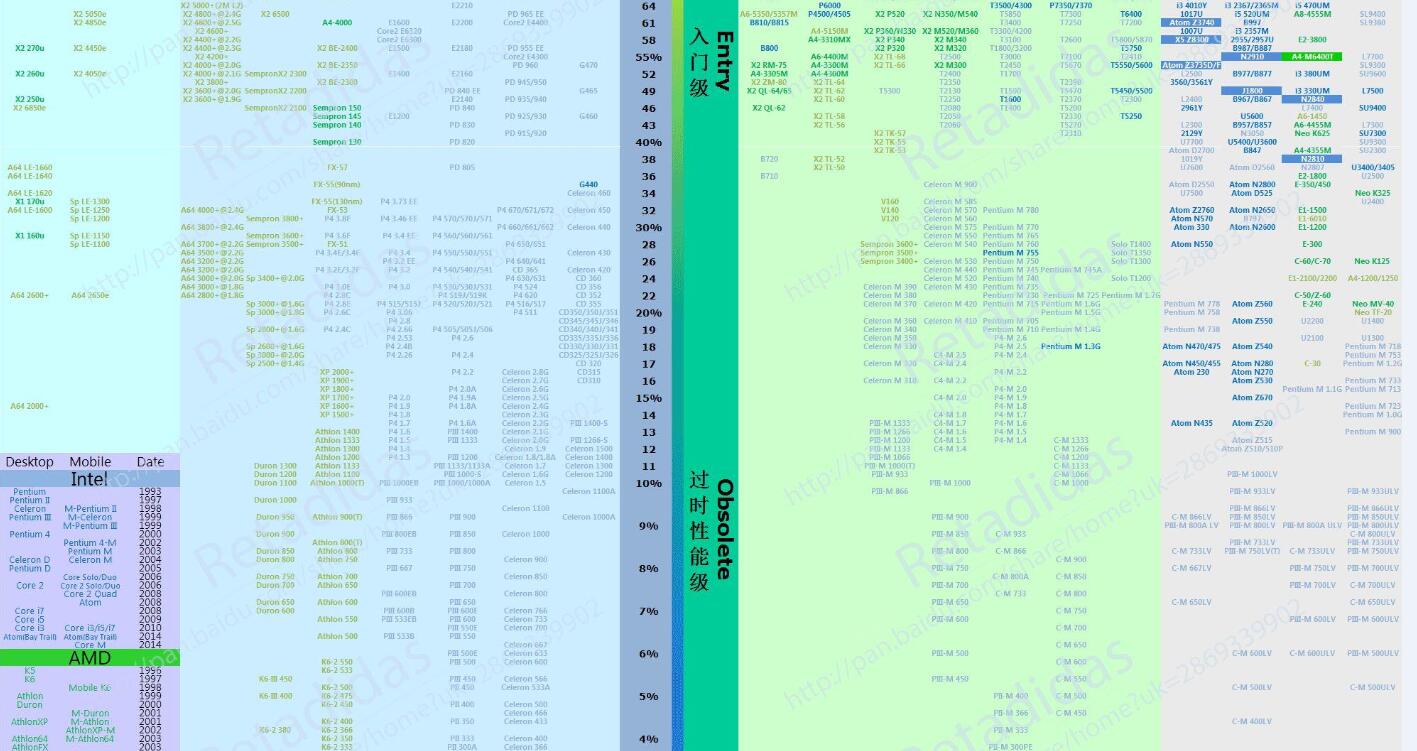 旧版CPU天梯图参考