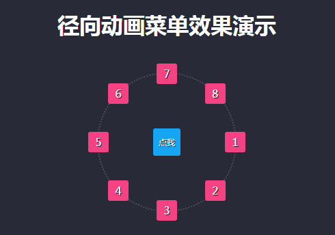 以上就是儒雅高跟鞋最近收集整理的关于jQuery实现径向动画菜单效果的全部内容,更多相关jQuery实现径向动画菜单效果内容请搜索靠谱客的其他文章。