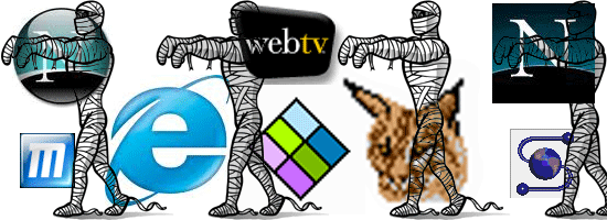 有一些 Web 技术与标准 (中文翻译),它们已经死亡,却仍然阻挡不住一些开发者的热情,一个很好的例子是 WML (无线标记语言),智能手机的技术在飞速发展,现代的移动设备,已经能够很轻松地实现对常规 HTML 的支持,然而,像 BBC 这样的媒体网站,仍然坚持着他们对这门技术的好感,这里面包含的一个事实就是,虽然 WML 不是真正的 Web,且 W3C 已经从某种程度上宣布了它的死亡,但仍然有不少人在使用老款手机访问这些站点,最终,开发者们只好继续为他们的站点另外提供一个 WML 版本。