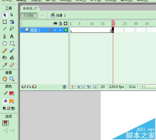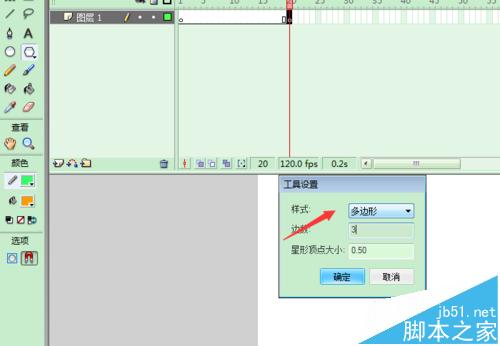 2、在第二十帧处添加关键帧;选择多变形工具,绘制一个三角形;