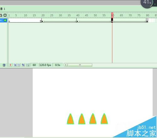 3、复制绘制的三角形;并且在20帧处添加形状补间动画;