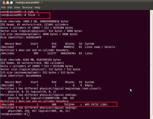 首先使用fdisk -l命令查看一下U盘是否有被识别到,及识别的U盘是在哪个位置