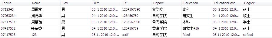 Exec sp_getTeacherInfo 'tbl_TeacherInfo','Name','楚留香'
