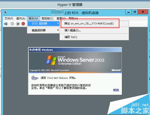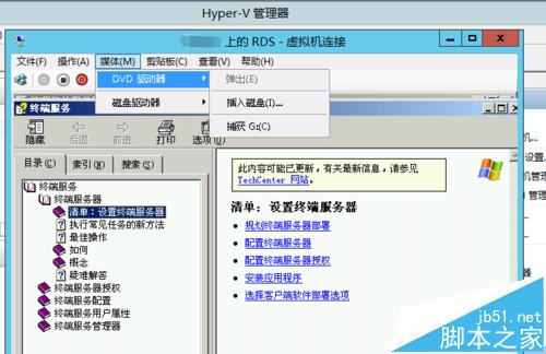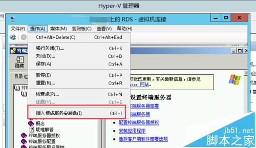 4、在菜单栏的操作下面,选择 插入集成服务安装盘