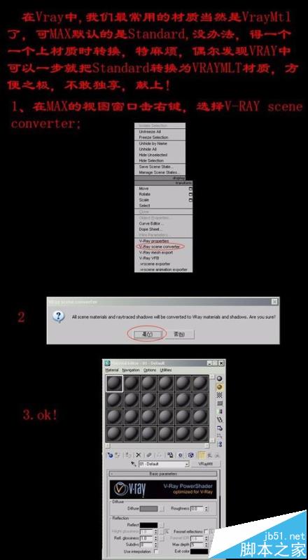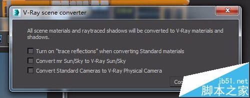 在vray ,中会有碰到默认材质standard,会影响渲染速度和出错,解决办法,是把这种材质转换成vr材质。