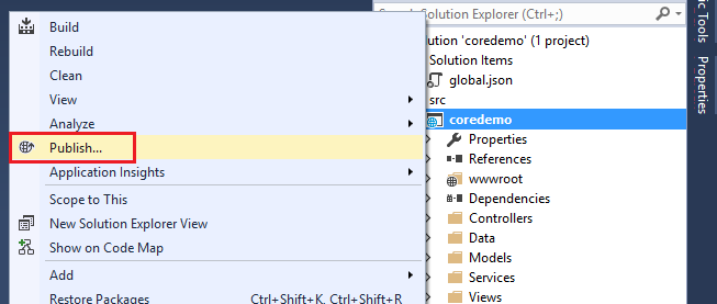右键已创建的项目名称,选择 “Publish”。