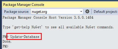 2. 在 Visual Studio 的 Package Manager Console 中执行 “Update-Database” 命令。