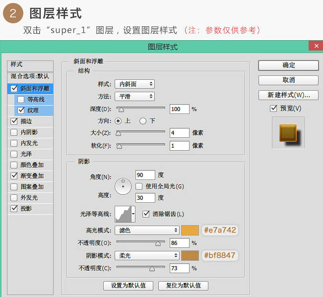 2、双击“super_1”图层,设置图层样式,如下图。