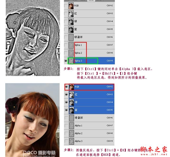 1、选择【绿】通道,并复制【绿】通道,得到【绿副本】通道。