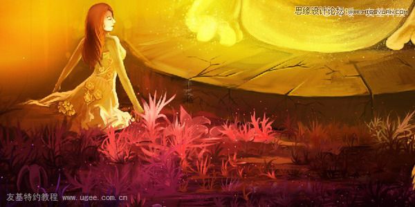 13.绘制角色和她周围的一些地方,比如地面的层次、人物的体积感,还有青蛙王子脚的透明感等。