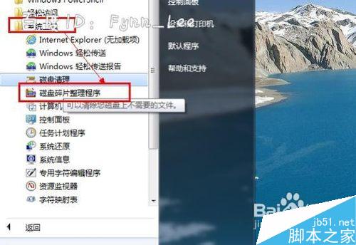 1、在“开始”菜单点击“附件 -> 系统工具”,然后点击次文件夹下的“磁盘碎片整理程序”以打开,一般电脑长时间未进行磁盘碎片整理导致电脑关机很慢。
