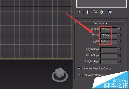 5、选择这个box物体,在modify里设置其参数如图所示: