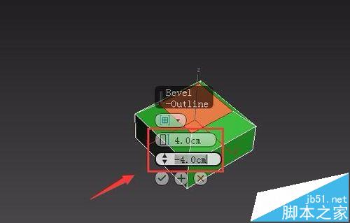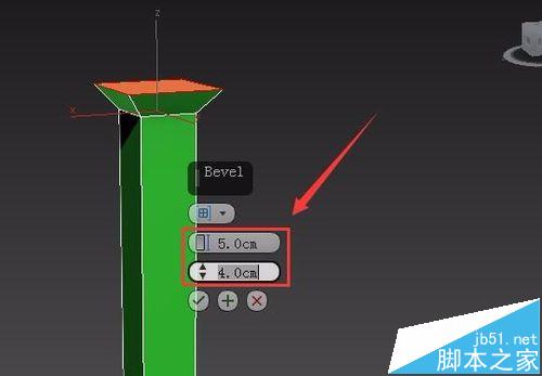 11、再次选择bevel后的按钮,设置高度为5,轮廓为4,点击对号确定,如图所示: