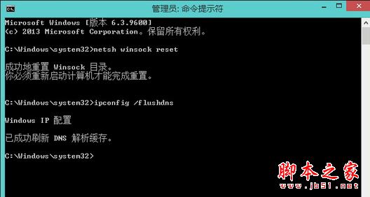 1、按Win+X,选择命令提示符(管理员),键入:netsh winsock reset,按回车键;