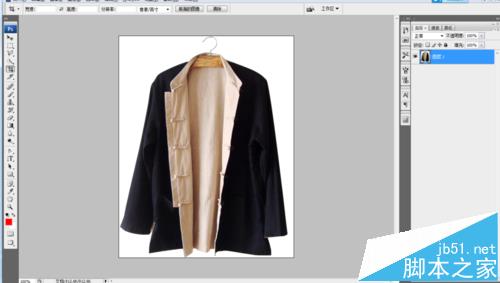 3、打开photoshop软件,拉进去一张衣服图片,如图