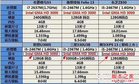 目前所有超级本均采用处理器核心显卡