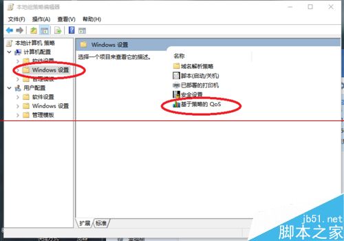 3、在左边找到“windows设置”,左击,然后在右边找到“基于策略的Qos”,右击“基于策略的Qos”,选择“高级Qos设置”,进行如图设置,基本上就没问题了