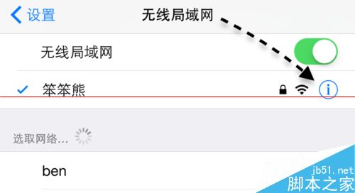 6、接下来请点击 iPhone 当前已经连接无线右侧的“信息”图标,如图所示