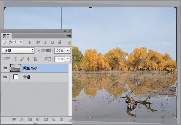 步骤8:隐藏“背景”图层,选取工具箱中的裁剪工具,创建一个适当大小的裁剪框。