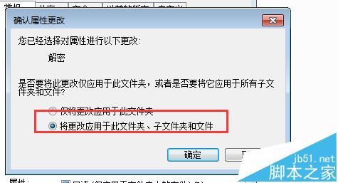 5、点击之后还会弹出一个是否应用于子文件和文件夹的弹窗,我们选择第二个选项