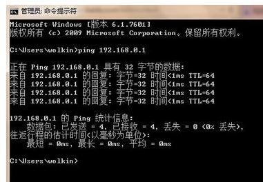 打开CMD输入:ping 192.168.0.1(换成你的网关),如下图所示表示能连接上局域网路由器