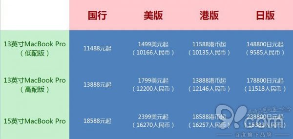 通过对比可以知道,日版MacBook Pro的售价最低,其次是港版的,最贵的依然是国行。不过考虑到保修、售价、购买难易度等多方面因素,大陆地区的用户购买港版和国行都可以保修,鉴于国行和港版的价格差,与港版的MacBook Pro差价达到了1千多块,购买港版的新款MacBook Pro是比较好的选择。