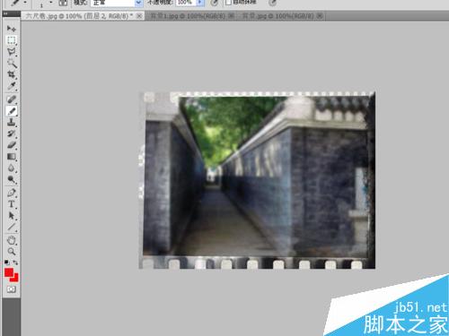 选择工具箱里裁剪工具对六尺巷照片进行裁剪,切换到背景图片执行选择-全部命令,然后执行编辑-拷贝命令,再切换到六尺巷照片,执行编辑-粘帖命令。