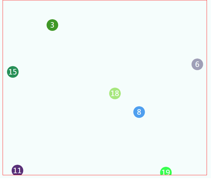 小球与小球之间的碰撞,要判断小球在被撞小球的哪个方向,从而判断小球该向哪个方向移动,同样的改变小球的坐标值,来实现小球的反弹