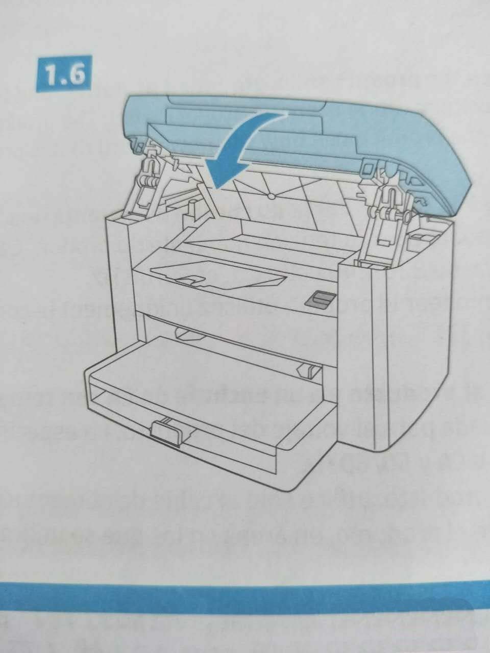 6、最后把上盖放下,听到蓝色按钮卡壳声,说明已经安装到位,这时你可以安装上纸进行测试啦