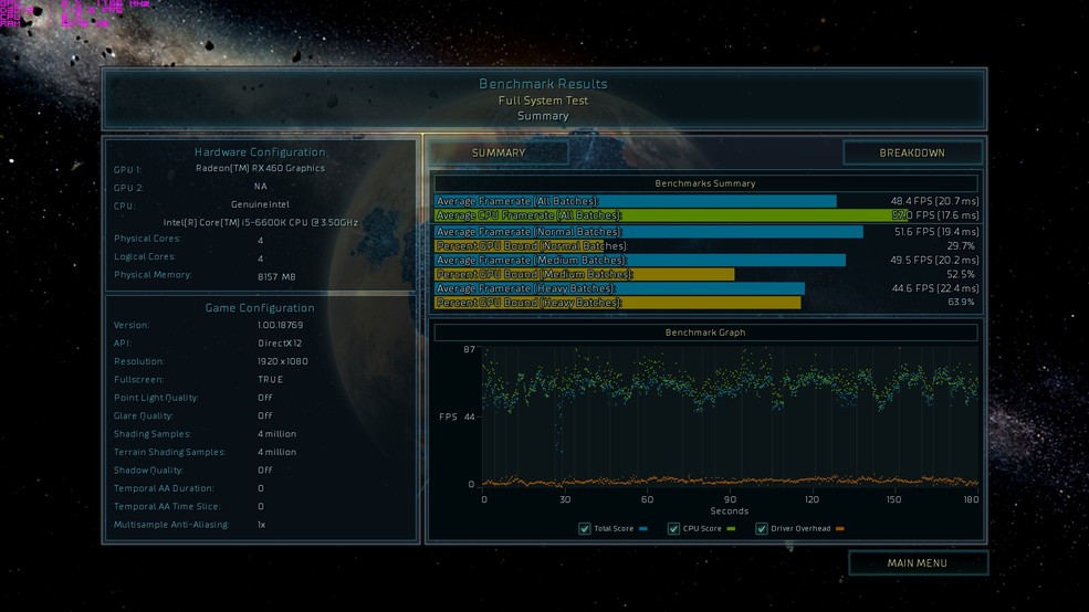 战地1默认最高特效从图中地方开始跑一分钟,录得最低帧数41,平均帧数47.9,算是勉强流畅了。