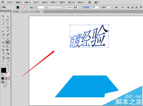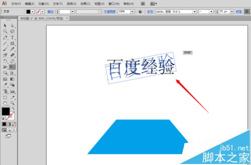 3、做完图形的透视功能,我们来看看文字能不能做透视的功能。使用文字工具,在画布上写上几个字,比如百度经验四个字