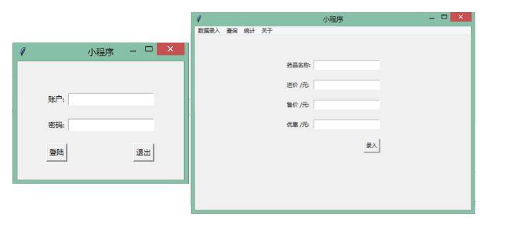 from tkinter import * from tkinter.messagebox import * class InputFrame(Frame): # 继承Frame类 def __init__(self, master=None): Frame.__init__(self, master) self.root = master #定义内部变量root self.itemName = StringVar() self.importPrice = StringVar() self.sellPrice = StringVar() self.deductPrice = StringVar() self.createPage() def createPage(self): Label(self).grid(row=0, stick=W, pady=10) Label(self, text = '药品名称: ').grid(row=1, stick=W, pady=10) Entry(self, textvariable=self.itemName).grid(row=1, column=1, stick=E) Label(self, text = '进价 /元: ').grid(row=2, stick=W, pady=10) Entry(self, textvariable=self.importPrice).grid(row=2, column=1, stick=E) Label(self, text = '售价 /元: ').grid(row=3, stick=W, pady=10) Entry(self, textvariable=self.sellPrice).grid(row=3, column=1, stick=E) Label(self, text = '优惠 /元: ').grid(row=4, stick=W, pady=10) Entry(self, textvariable=self.deductPrice).grid(row=4, column=1, stick=E) Button(self, text='录入').grid(row=6, column=1, stick=E, pady=10) class QueryFrame(Frame): # 继承Frame类 def __init__(self, master=None): Frame.__init__(self, master) self.root = master #定义内部变量root self.itemName = StringVar() self.createPage() def createPage(self): Label(self, text='查询界面').pack() class CountFrame(Frame): # 继承Frame类 def __init__(self, master=None): Frame.__init__(self, master) self.root = master #定义内部变量root self.createPage() def createPage(self): Label(self, text='统计界面').pack() class AboutFrame(Frame): # 继承Frame类 def __init__(self, master=None): Frame.__init__(self, master) self.root = master #定义内部变量root self.createPage() def createPage(self): Label(self, text='关于界面').pack()