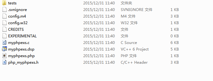 若成功会再ext目录下生成myphpexs文件夹,内容如下