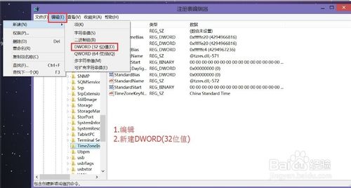 第三步、在TimeZoneInformation这个文件夹新建DWORD值(32位),重命名为"RealTimeIsUniversal"值设为1,设置完后.关闭注册表编辑器.重新启动平板.时间问题既可解决