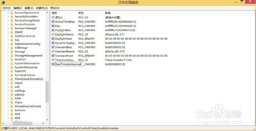 第二步、在注册表左侧按照下面的路径打开:HKEY_LOCAL_MACHINE\SYSTEM\CurrentControlSet\Control\TimeZoneInformation