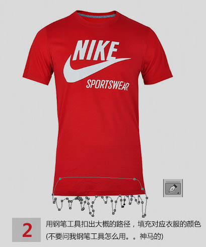 2、用钢笔工具扣出大概的路径,填充对应衣服的颜色。
