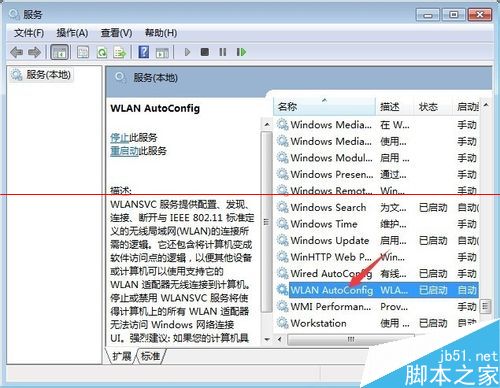 3、如图所示,打开Windows的服务列表,并在右侧栏搜索“WLAN Autocong....”。