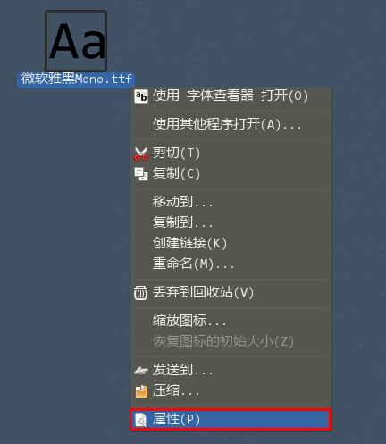 1、首先,在红帽 linux 系统中找到你要替换为的字体,然后在该字体上右击鼠标,点击“属性”。