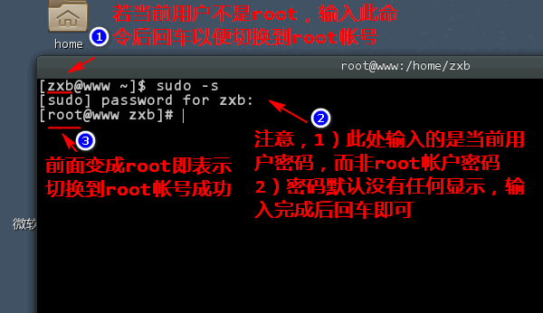 2、打开终端后,如果当前用户并不是 root 用户,切换到 root 用户。