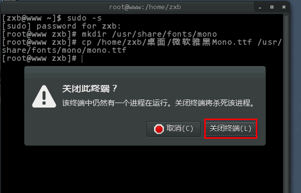 2)关闭终端时,如果弹出警告提示,直接无视即可。