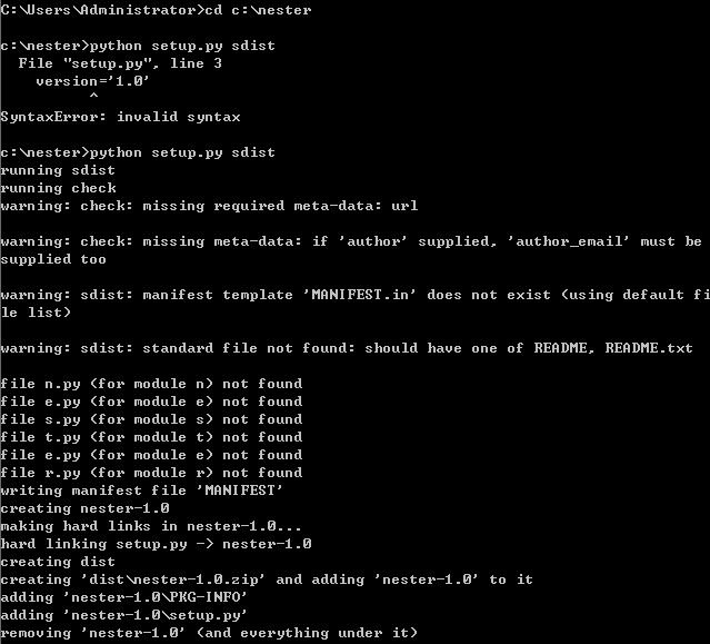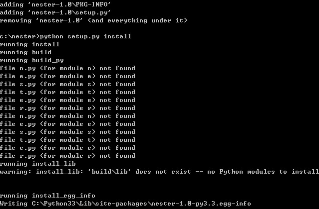 1.为模块nester创建文件夹nester,其中包含:nester.py(模块文件):