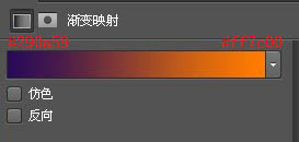 7、新建调整图层--渐变映射,颜色从#290a59到#ff7c00,改模式为柔光,不透明度80%,填充80%。